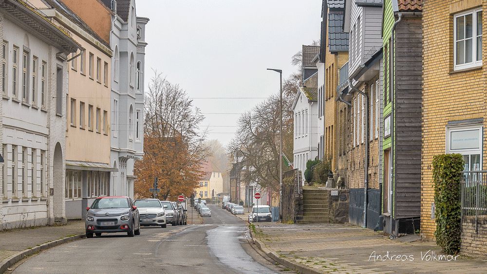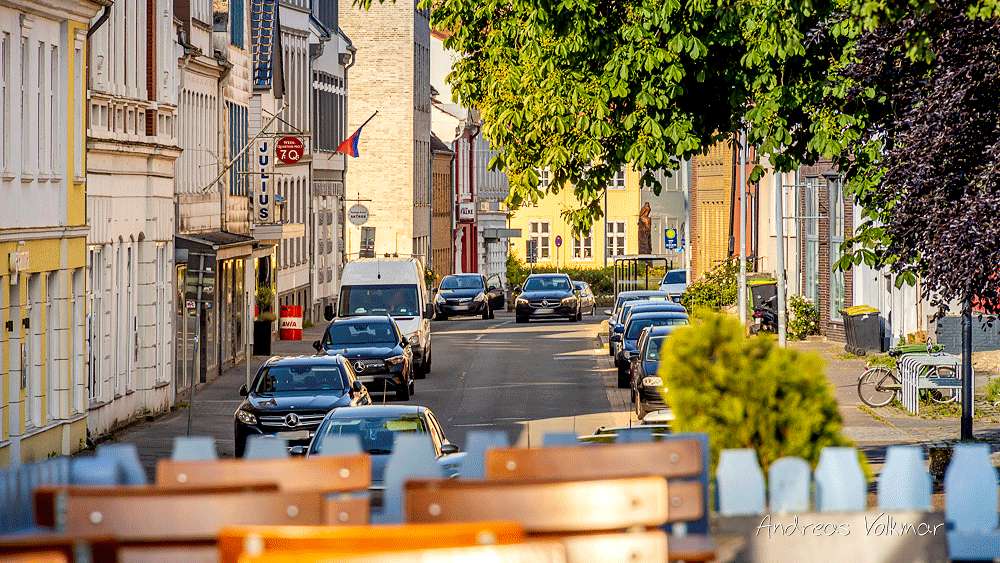 Ursprünglich war der Lollfuss nur ein vereinzelt bebauter Verbindungsweg zwischen Schloss und Altstadt. An seiner Nordseite erhebt sich der Heesterberg und deshalb gibt es am Fuße dieser Anhöhe viele Quellen. Diese wurden früher Loller genannt und, da es hier sehr viele davon gab, entstand der Name Lollfuss. Das älteste Gebäude stammt noch aus dem Jahre 1568, aber erst im 17.Jahrhundert wurden die Lücken bebaut und der Lollfuss wurde zum Wohnquartier für die Bediensteten vom Schloss. Dazu kamen an der Schleipromenade noch einige Handelshöfe mit ihrer typischen, einen Innenhof umschliessenden Bauweise.